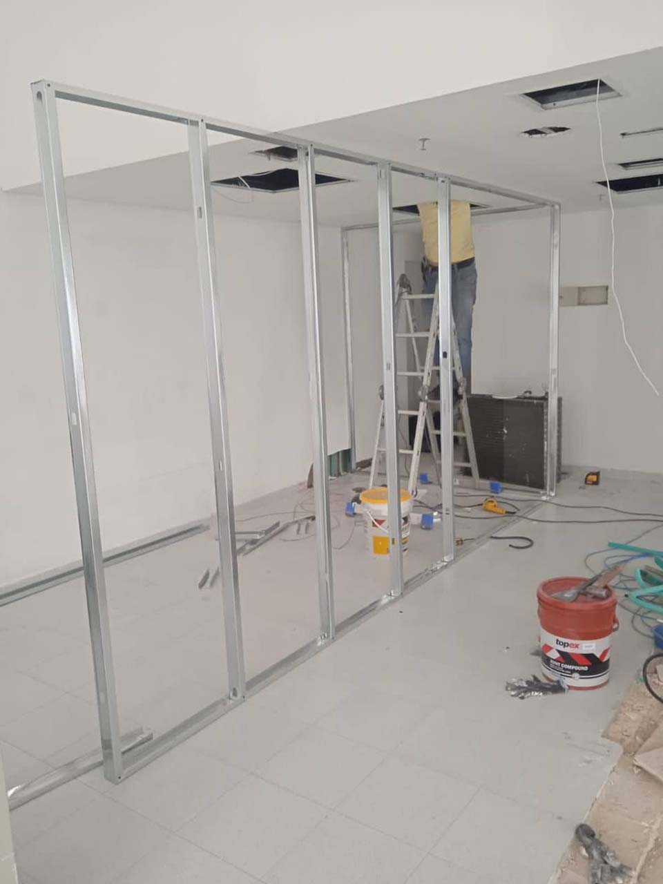 Realizamos instalaciones en Drywall para cielos y muros con acabados de alta calidad, ideales para remodelaciones limpias, rápidas y funcionales. Trabajamos en espacios residenciales, comerciales e industriales, con estructuras sólidas, paneles resistentes y terminaciones listas para pintura o decoración.